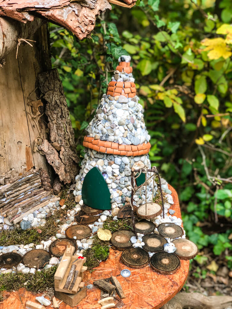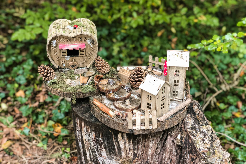 Wir entdecken unter anderem die Wichtelschule, eine Kirche und den Bahnhof, ein Waldfreibad, den Wichtelspielplatz und sogar eine eigene Imkerei. Mit natürlichen Materialien wie Holz, Steinen, Moos und Zapfen, mit bunten Tontöpfen, Häkeltieren und liebevollen Details haben die Künstler eine eigene kleine Welt erschaffen.